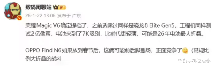 据了解,荣耀这次直接把发布节奏提前了一个季度,目的很明确,那就是要赶在春节后,正面硬刚同样搭载骁龙8 Elite Gen5(第五代骁龙8至尊版)的OPPO Find N6。