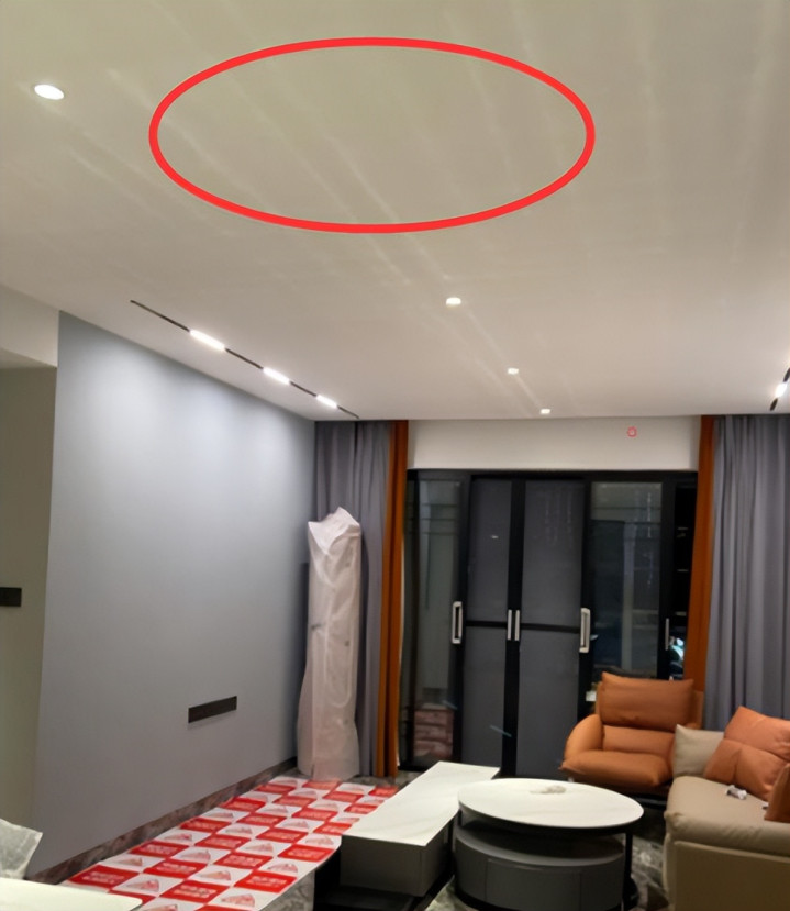 可回到家里,射灯一打开,光线被地砖反射回来,天花板上就开始显得乱。