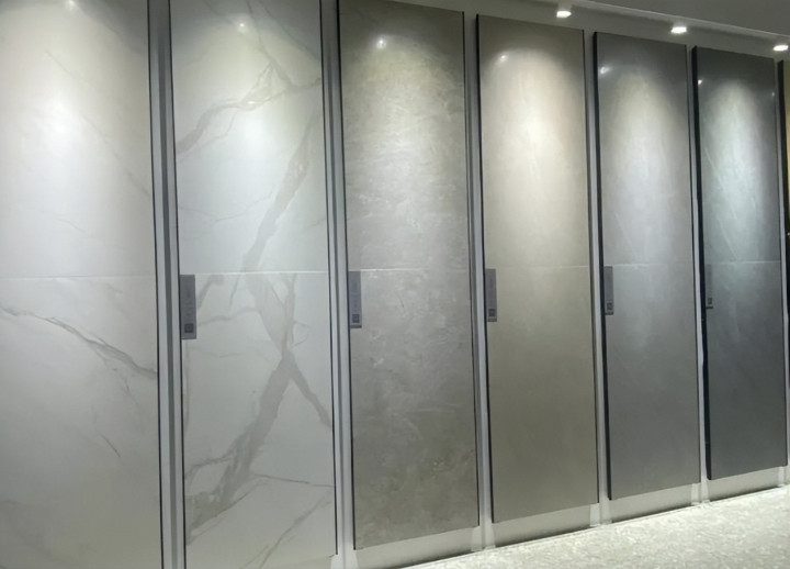 亮面砖在展厅里很好看,是因为灯光高度、角度都被精心控制过。